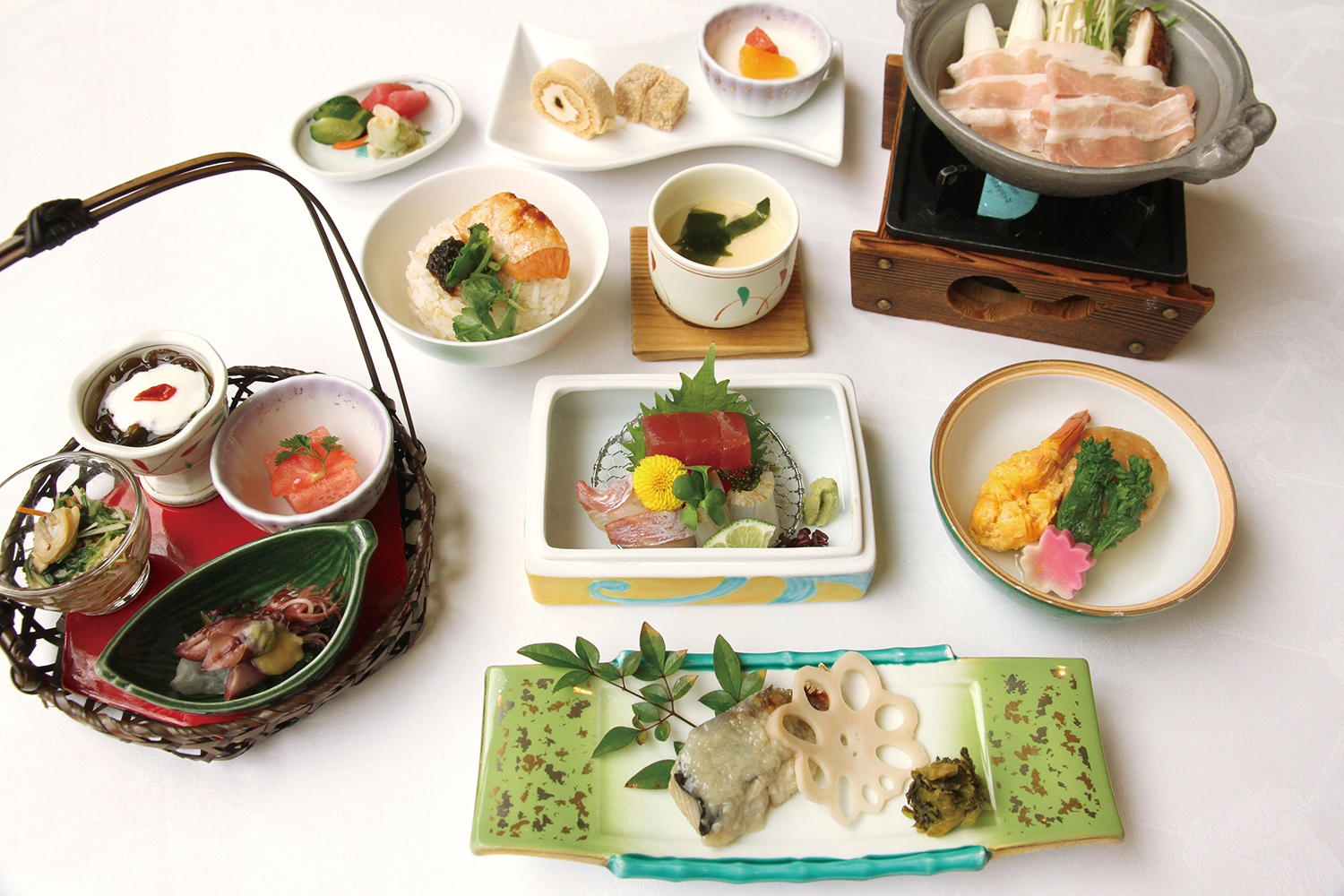 4.焼き物季節の魚やエビ、まれに肉類が焼いて出される。塩焼きや照り焼きなど、焼き方の工夫は日本料理の知恵だ。器も豪華なものが使用されることが多く、器も楽しむことができる。