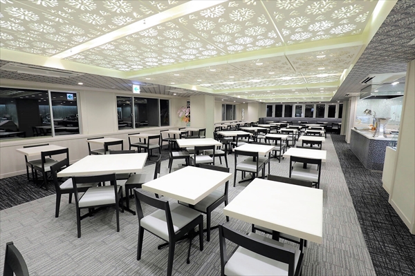 色を基調とした明るい店内で、最上階からの海を眺めながら食事を楽しめるレストラン。広々とした開放感溢れる店内に、沖縄の食材をふんだんに使用した彩り鮮やかな料理が並ぶ。
