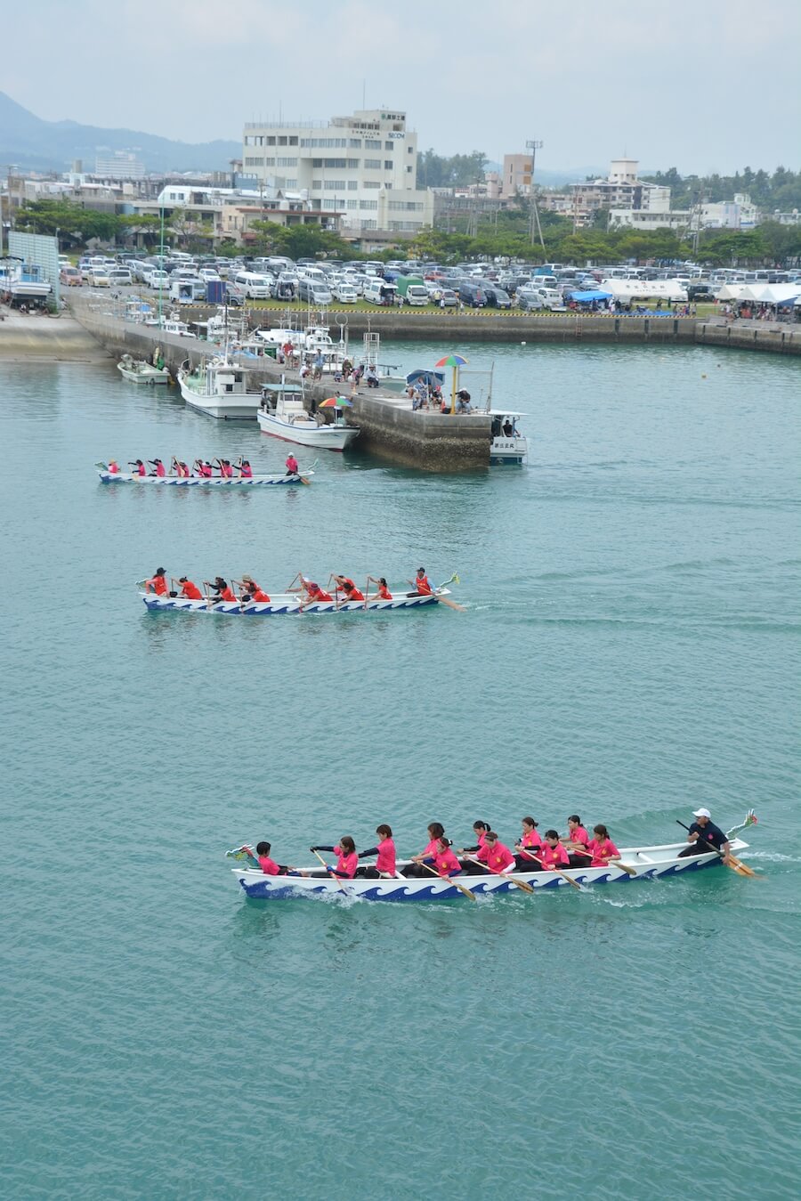 名護市長杯争奪全島ハーリー大会は、通称「ハーリー甲子園」とも呼ばれ、県内でも最多の人数を誇り、今年は180チームが参加。予選から決勝までの漕ぎ手たちの白熱した戦いがこの大会の見どころだ。