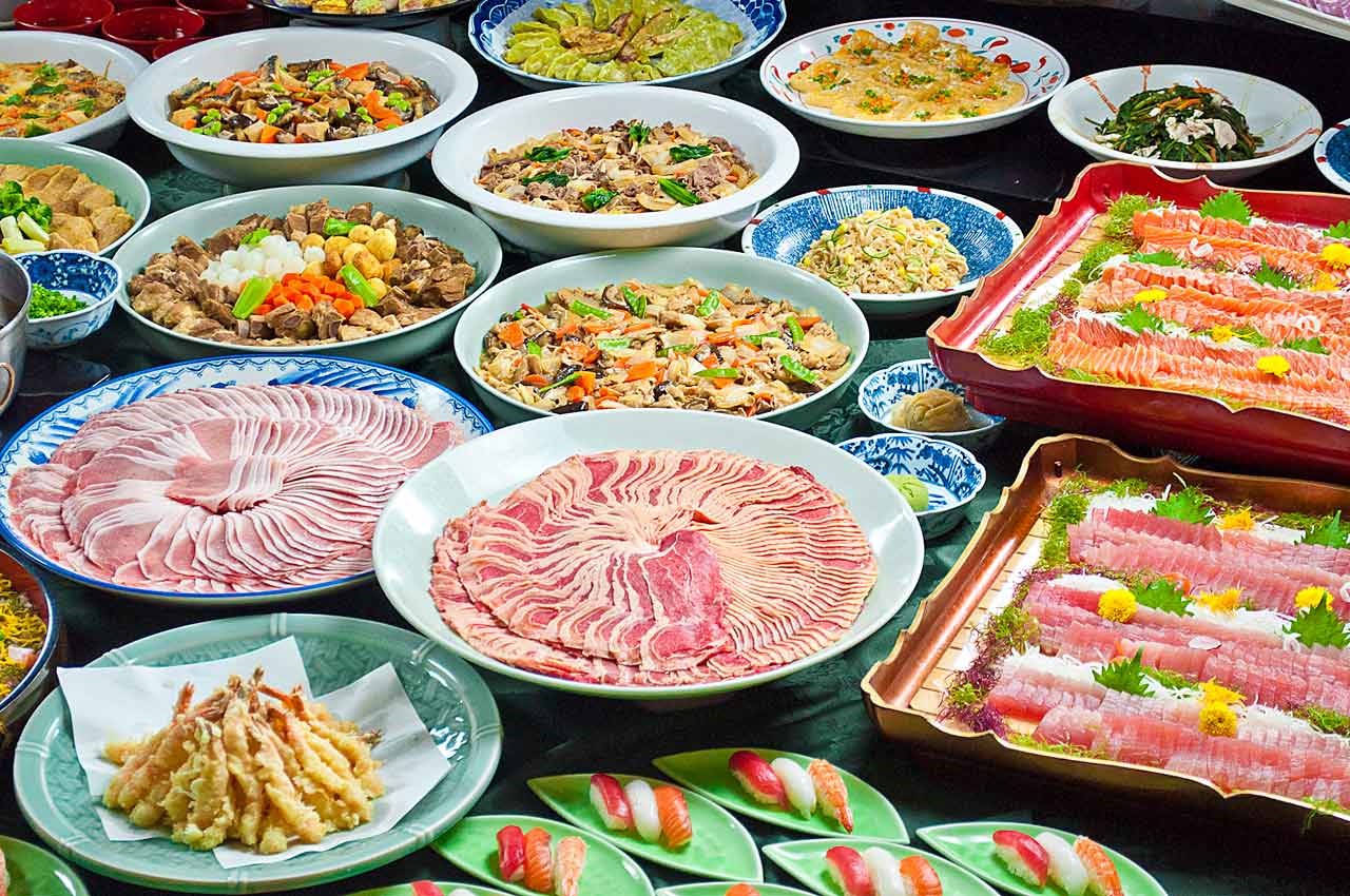 ホテルのランチブッフェは、和食・洋食・中華が食べられる3つのレストランから、好みのメニューがあるレストランを選択できる。食事はビールやワインなどの提供もあり、お酒もたしなむこともできる。