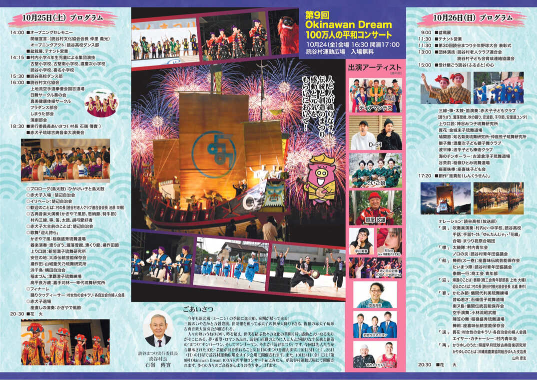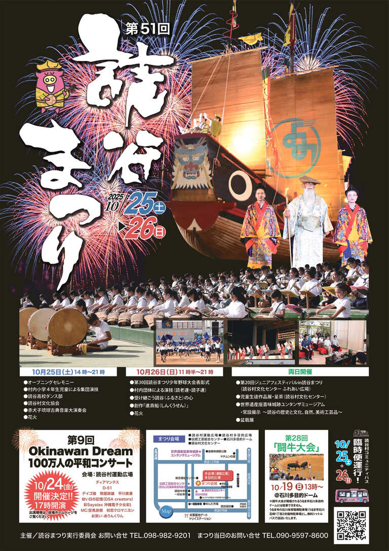 2025年10月25日(土)・26日(日)、読谷村運動広場を中心とする、読谷村内の5つの会場で、「第51回 読谷まつり」が開催される。