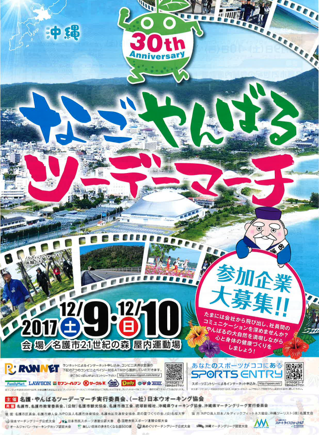 毎年12月に沖縄県本島北部(通称やんばる)で開催されるウォーキングイベント「名護・やんばるツーデーマーチ」が2017年12月9日(土)~12月10日(日)の2日間において開催される。