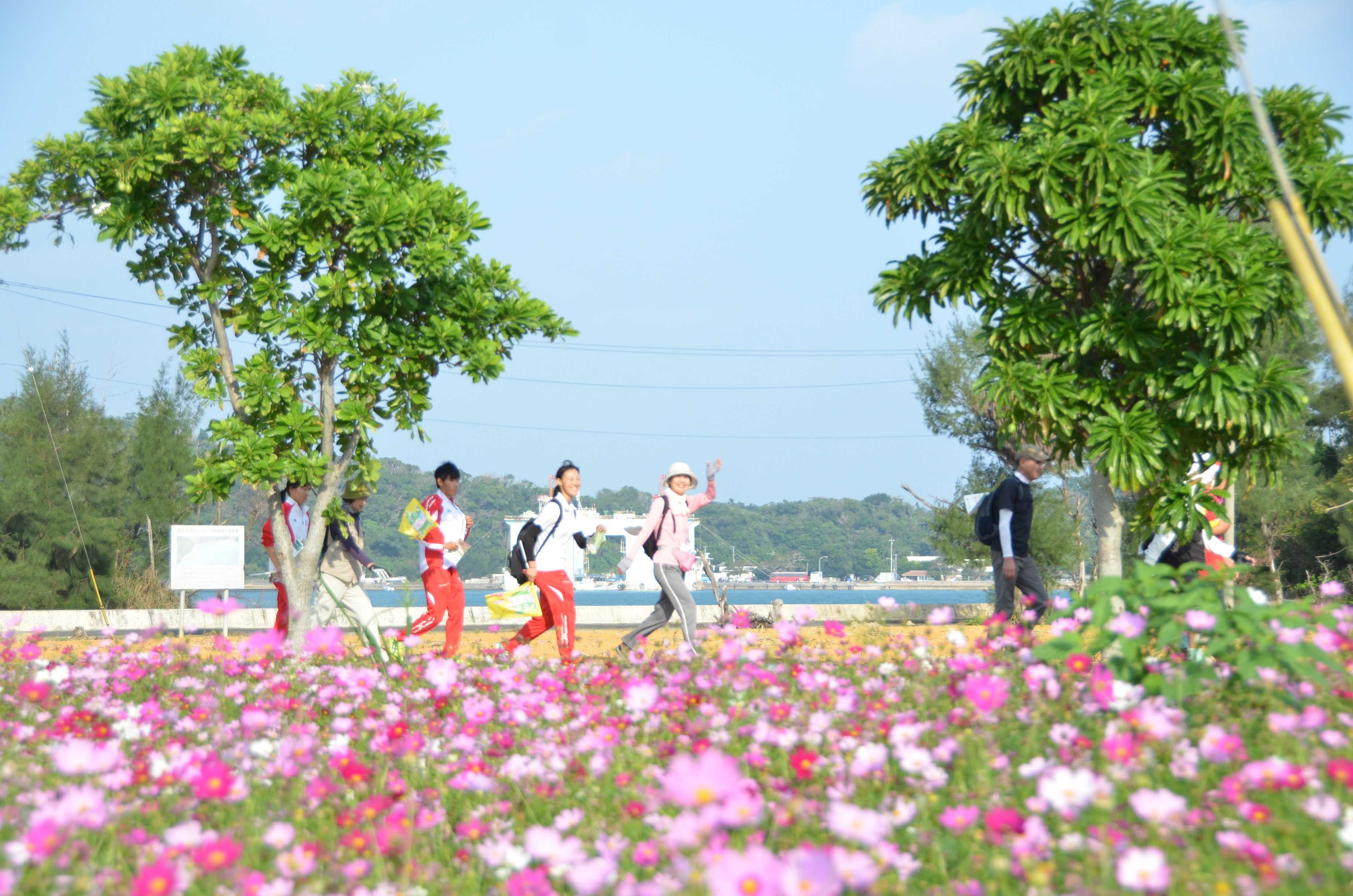 エメラルドグリーンの海や独自の生態系を営むやんばるの森など、自然豊かなやんばるの地をウォーキングしながら、人とのふれあいを楽しみ、心と身体の健康づくりの推進をめざしている。休憩所では名護の特産品で疲れた体にエネルギーを補充。