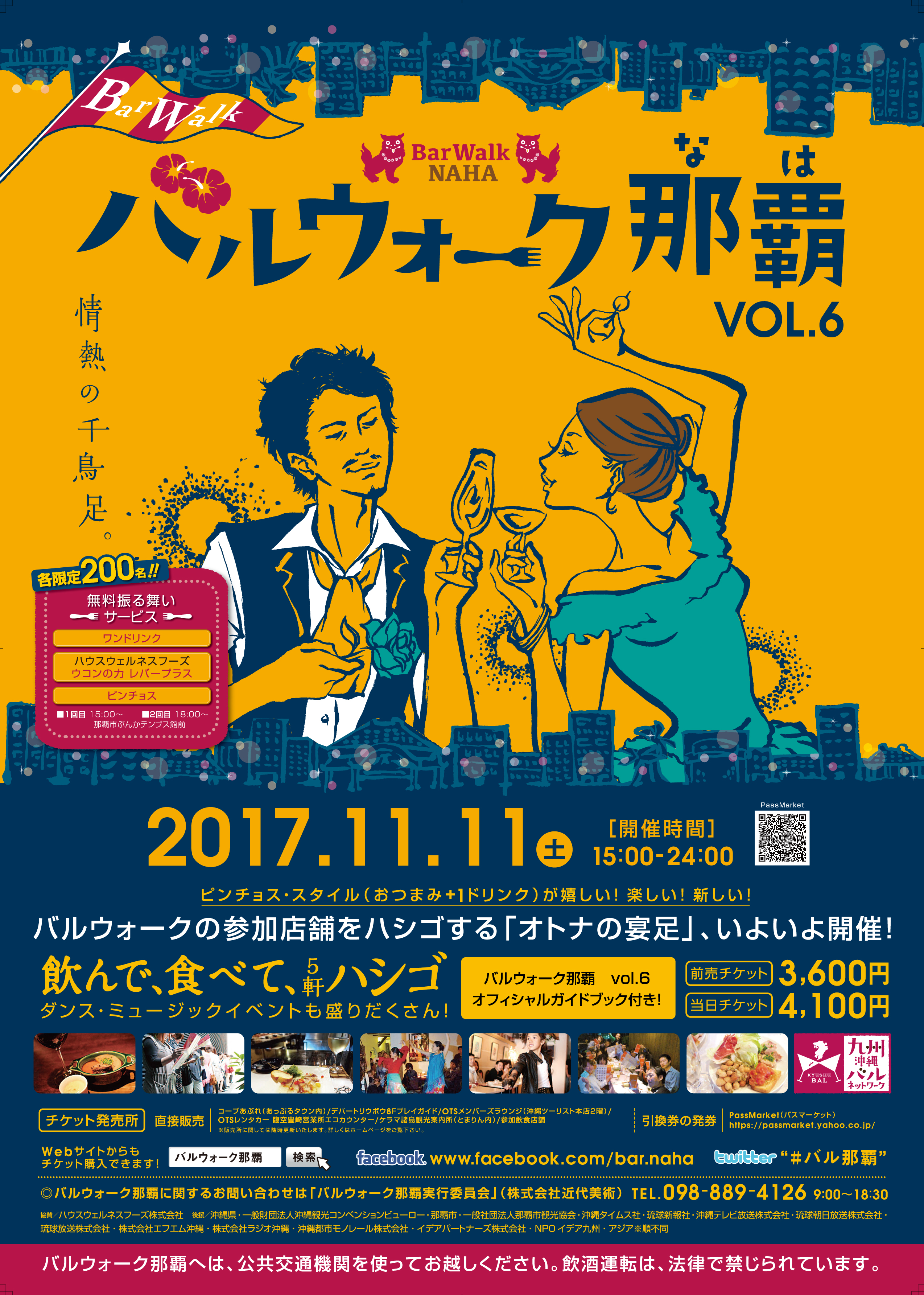 2017年11月11日(土)、沖縄県那覇市の国際通りを中心とした飲食店を飲み歩くイベント「バルウォーク那覇 vol.6」が開催される。
