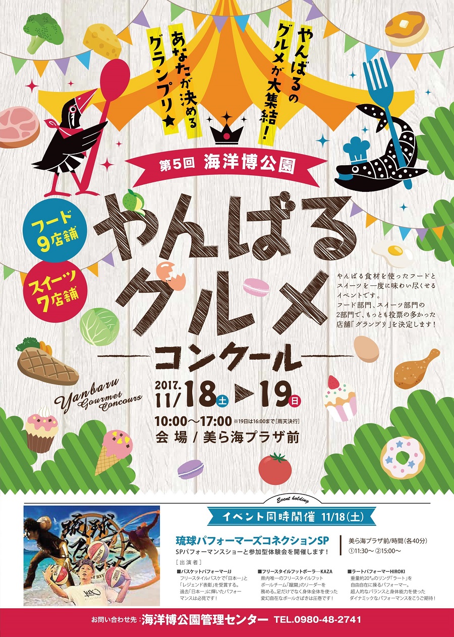 2017年11月18日(土)、19日(日)の2日間、沖縄県本島北部の本部町にある海洋博公園で「第5回海洋博公園やんばるグルメコンクール」が開催される。