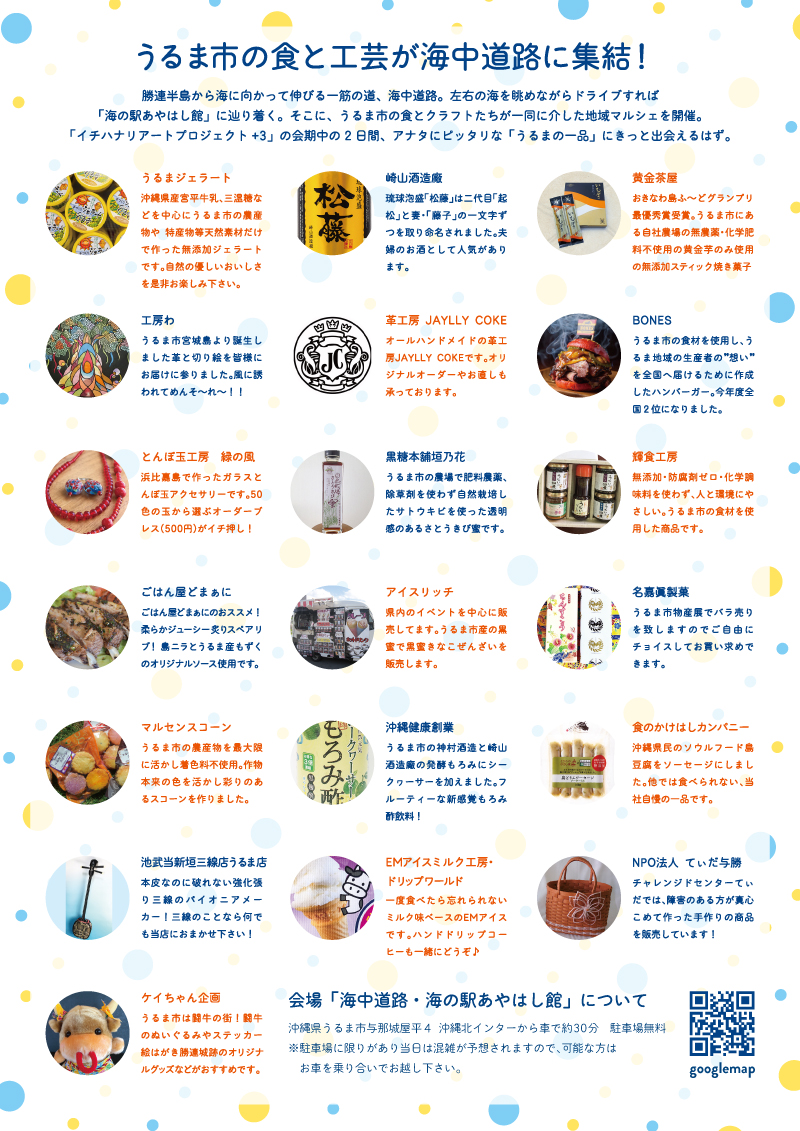 抽選イベント、うるま市特産品の詰め放題も開催され、うるま市で同日開催中のアートイベント「イチハナリアートプロジェクト+3」チケット持参で特典もある。