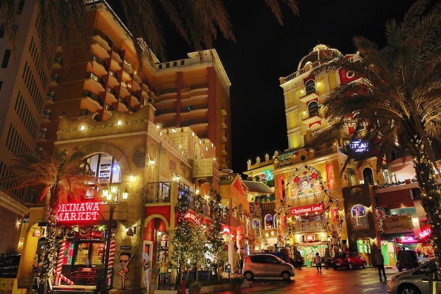 沖縄本島中部にある「美浜タウンリゾート・アメリカンビレッジ」では、2025年11月中旬~2026年2月中旬の期間中、17時~24時までイルミネーションが点灯。