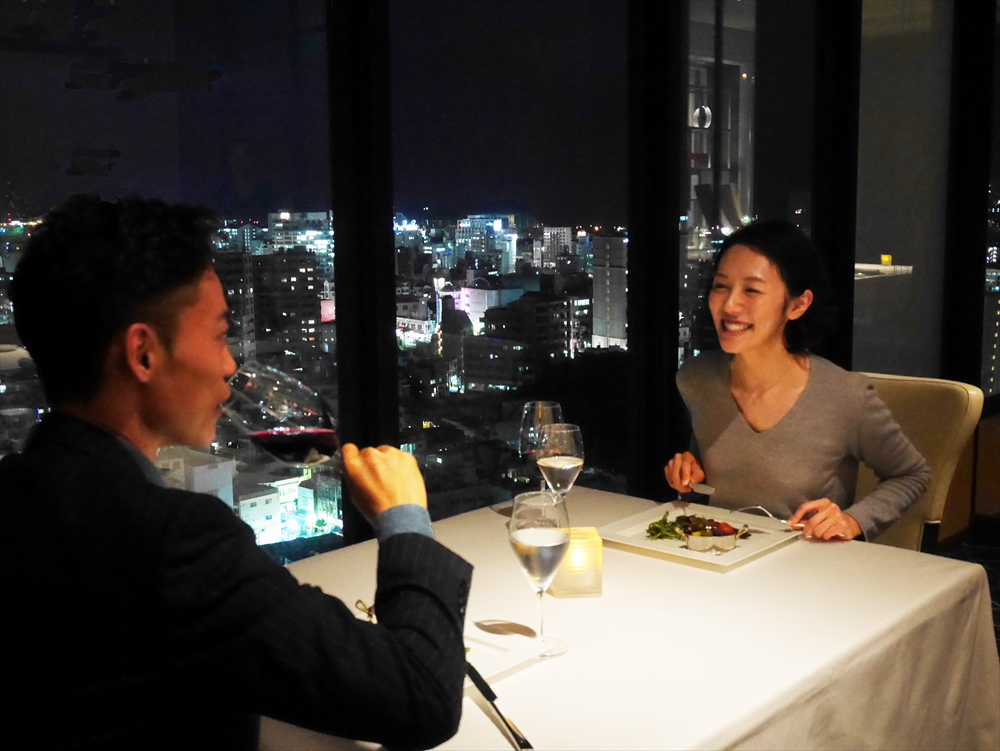 ■地上18階からの、美しい夜景を眺めながら食事を楽しむ