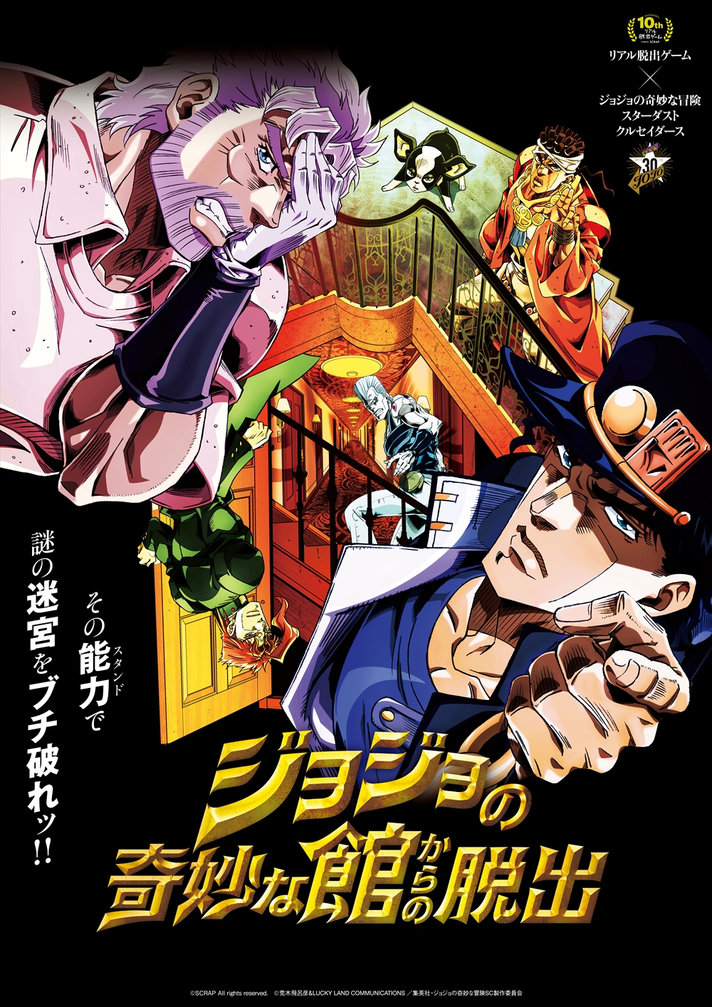 「リアル脱出ゲーム」と大人気TVアニメ「ジョジョの奇妙な冒険 スターダストクルセイダース」のコラボレーションイベント『ジョジョの奇妙な館からの脱出』が2018年2月3日(土)、沖縄県那覇市にある「RBCホール」にて公演される。