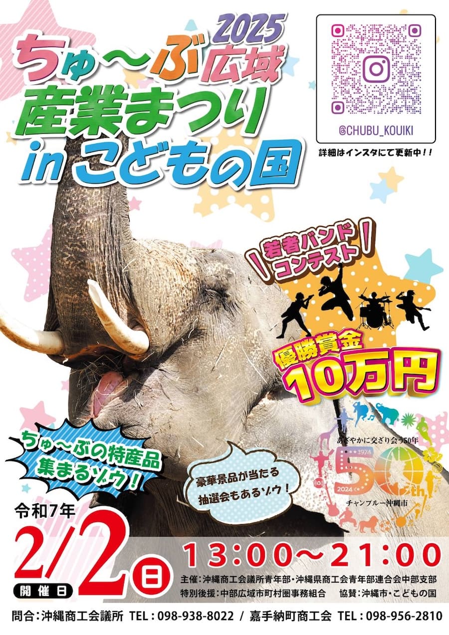 2025年2月2日(日)、沖縄こどもの国にて「ちゅ~ぶ広域産業まつり2025 in こどもの国」が開催される。
