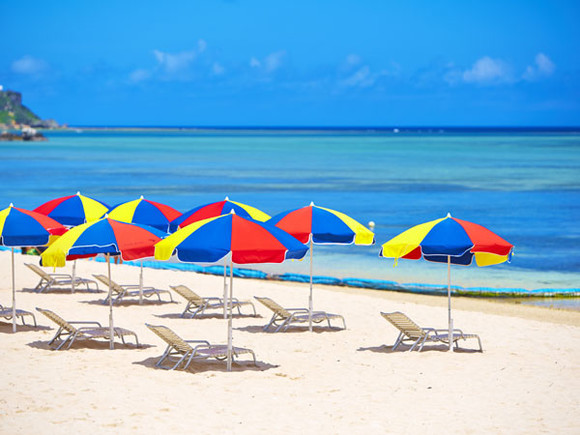 遠浅の海が広がっており、くらげ防止ネットが張られている遊泳区域では子どもも安心して泳げる。アクティビティも充実しており、シュノーケリングやマリンスポーツを楽しめるおすすめの海だ。