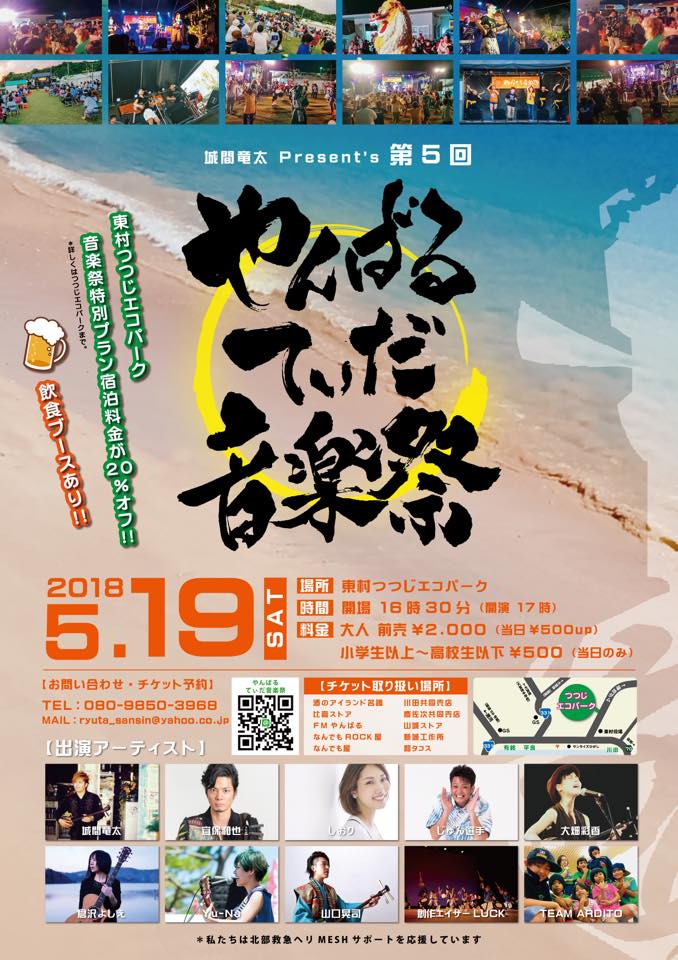 5月19日(土)、東村にあるつつじエコパークにて「第5回やんばるてぃだ音楽祭」が開催される。