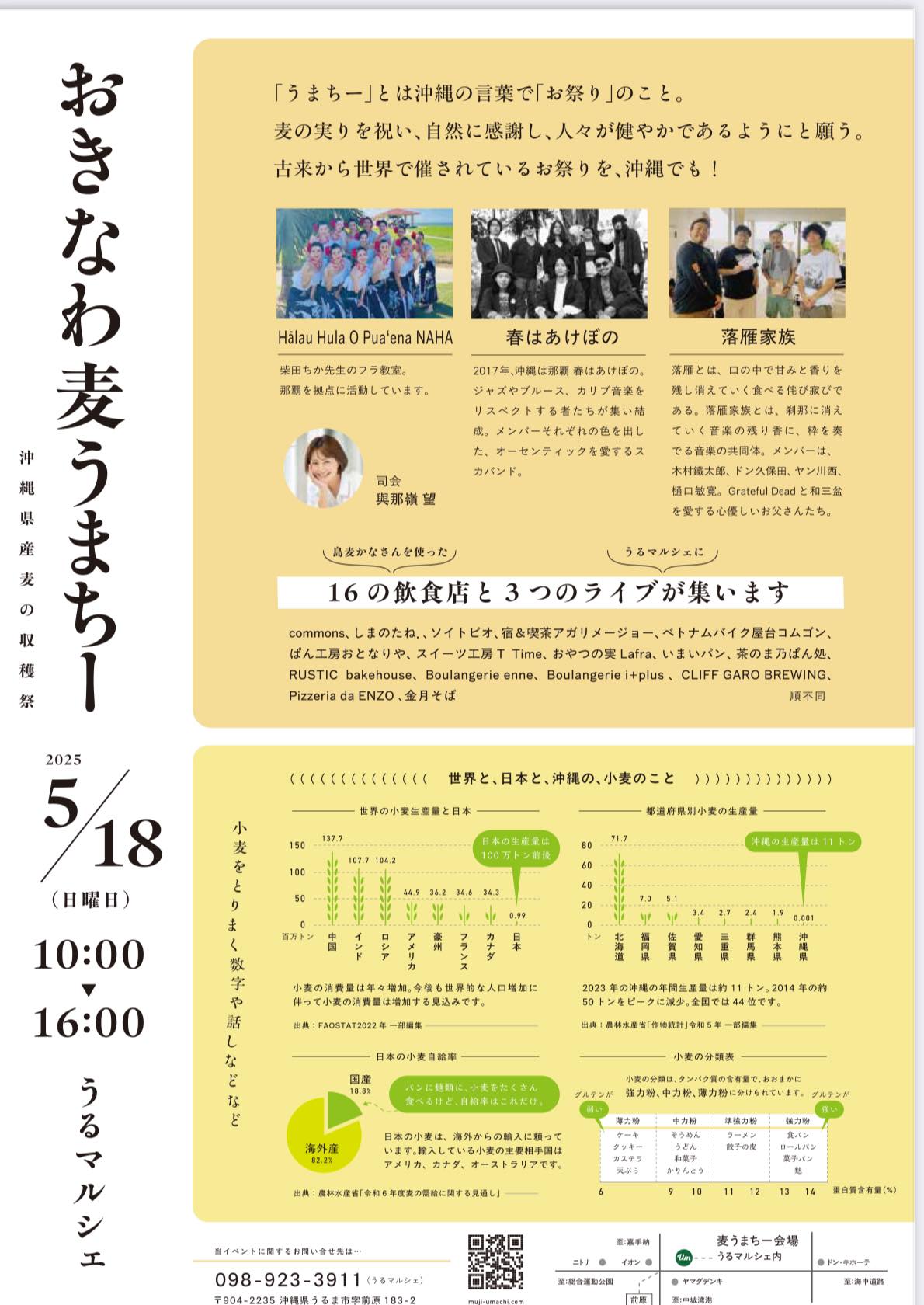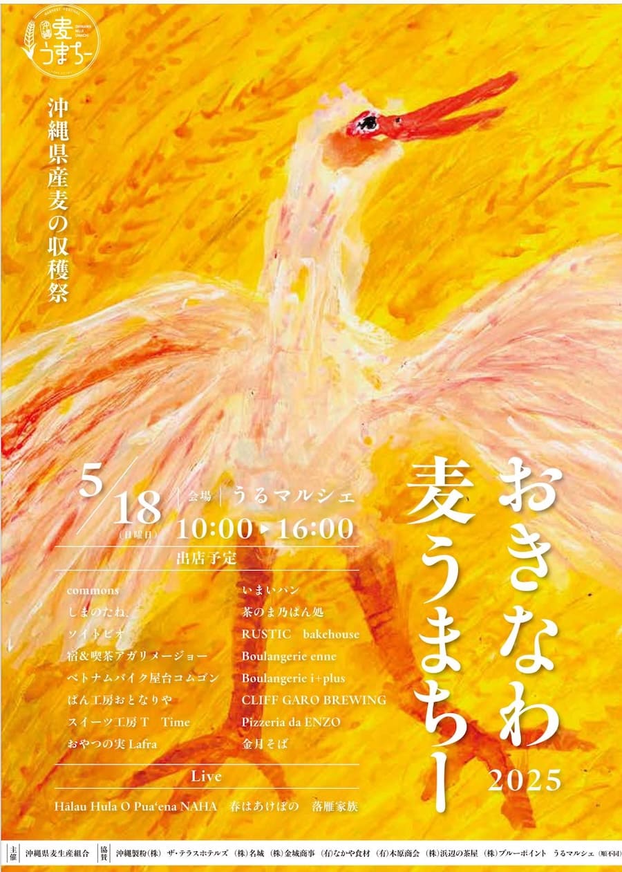 2025年5月18日(日)、沖縄県産麦の収穫祭「おきなわ麦うまちー」がうるマルシェで開催される。
