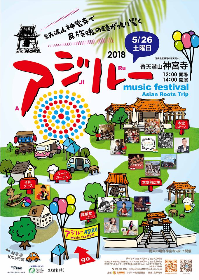 「AJIRu(アジルー)2018 Music Festival ~ASIAN ROOTS TRIP~」が5月26日(土)に普天満山神宮寺で開催される。