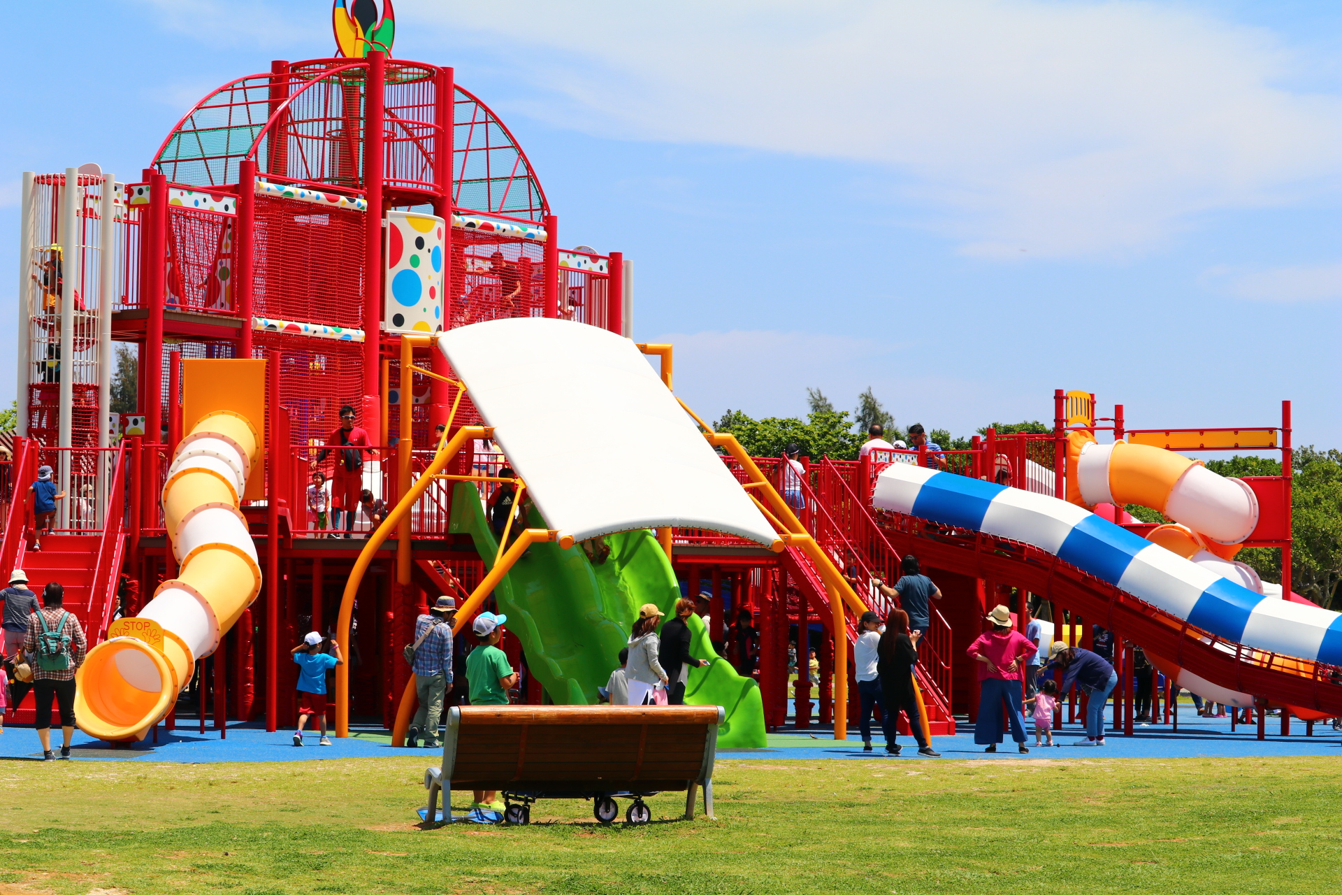 その沖縄県総合運動公園内に、合計7つの滑り台を有する大型複合遊具が2017年10月に登場した。