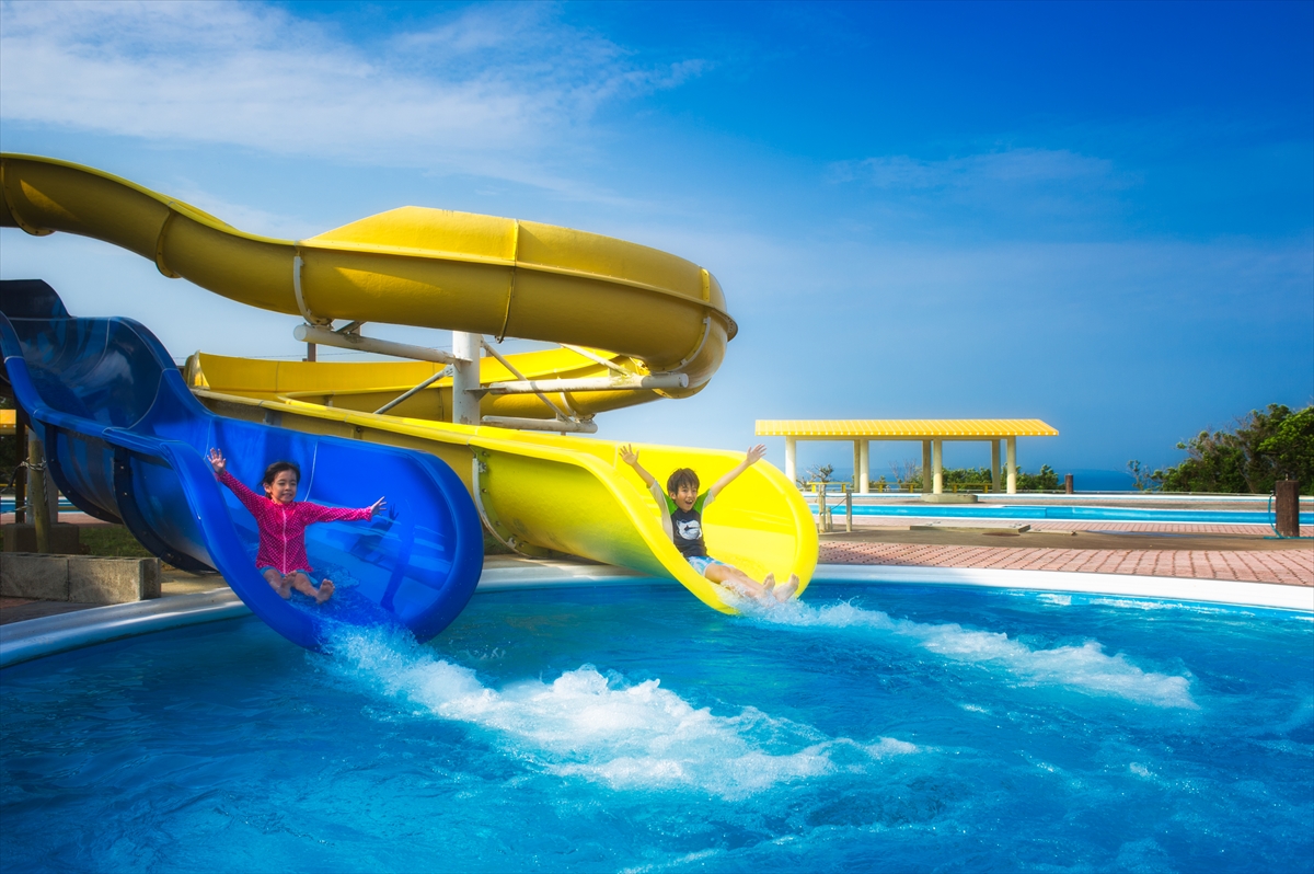毎年人気のレジャープールが、7月から毎日オープン。中でも人気なのが、全長78メートルのウォータースライダー。高台からの眺めは、まるで絶景オーシャンビューにダイブしているような気分になれる。