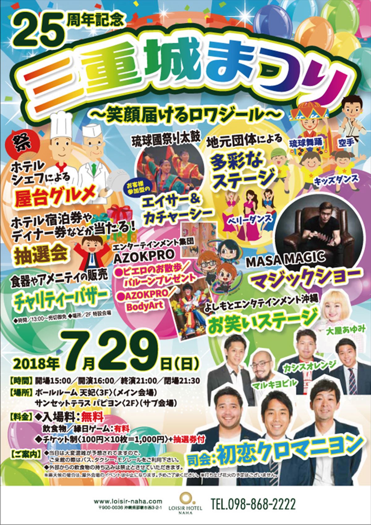 那覇市にある、「ロワジールホテル 那覇」は2018年2月2日(金)で開業25周年を迎えた。7月29日(日)、開業記念イベントとして「三重城まつり」を開催する。