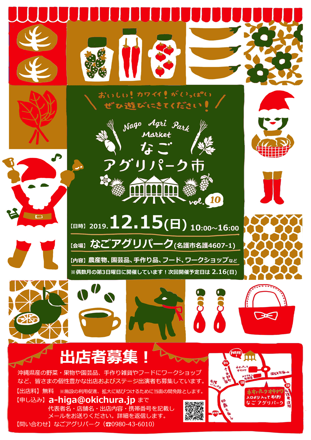 名護市にある「なごアグリパーク」にて、沖縄県産野菜・果物や園芸品、手作り雑貨やフード、ワークショップなどが楽しめるイベント「第10回 なごアグリパーク市」が開催される。
