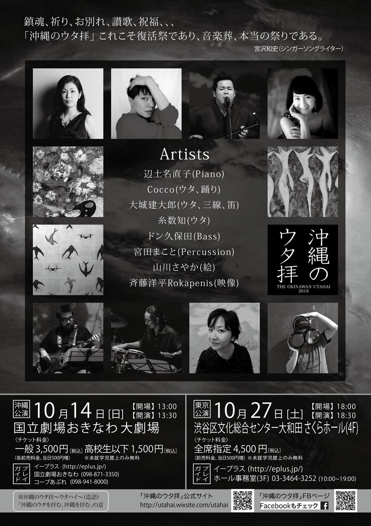 「沖縄のウタ拝(ウタハイ)2018」は、「OKINAWAという島が紡ぎつづけているもの」をテーマに沖縄の先達が歩んだ道のり、現在その先へ想いを寄せて、音楽・踊り・映像で表現する舞台芸術となっている。