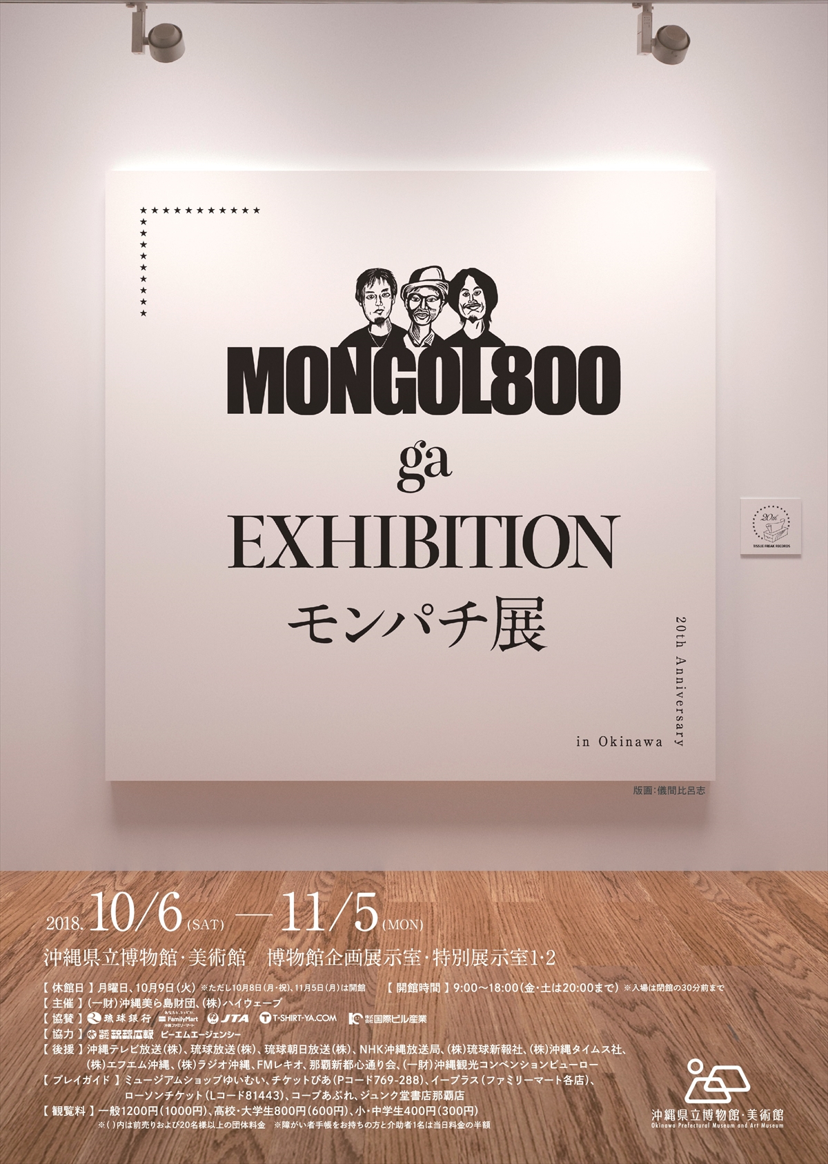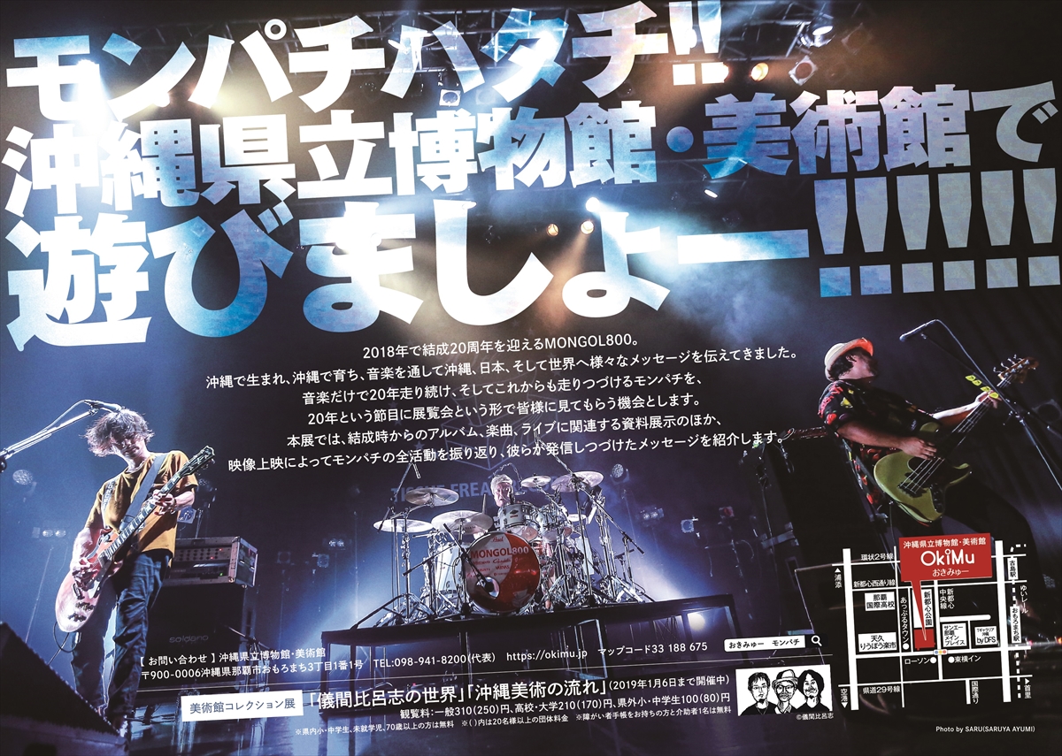 2018年で結成20周年を迎える県内出身のバンドグループ「MONGOL800」が、今年で20年という節目として「MONGOL800 ga EXHIBITION モンパチ展 in Okinawa - 20th Anniversary」展覧会を開催。