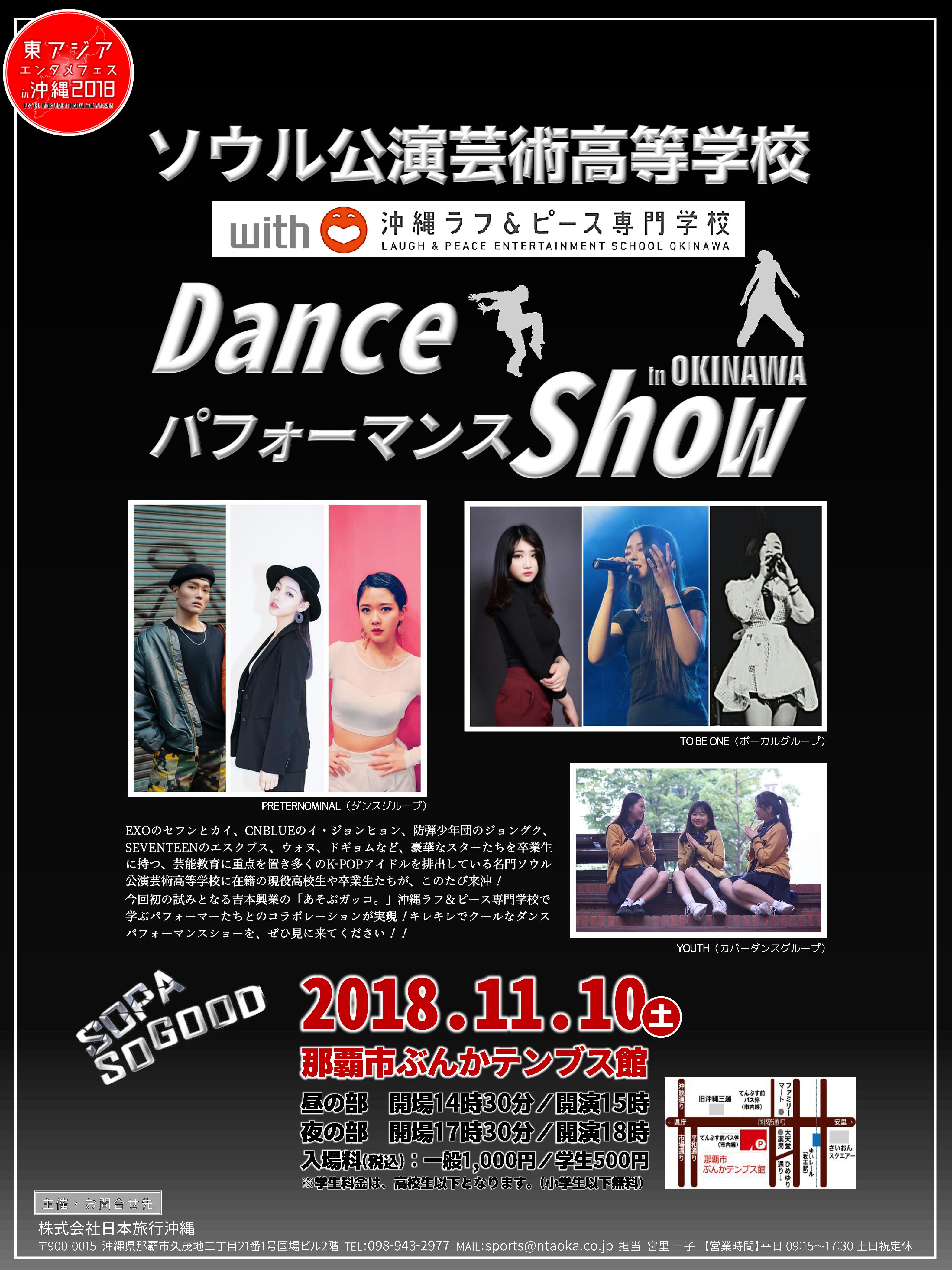 2018年11月10日(土)、EXOのセフンとカイ、CNBLUEのイ・ジョンヒョン、防弾少年団のジョングク、SEVENTEENのエスクプス、ウォヌ、ドギョムなど豪華なスターたちを卒業生に持ち、多くのKPOPアイドルを輩出している名門ソウル公演芸術高等学校に在籍する現役高校生と卒業生たちが来沖する。