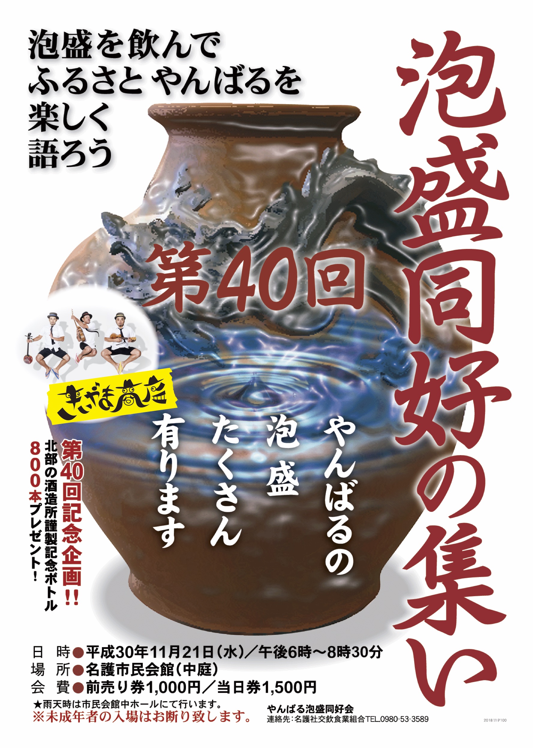 泡盛好きにはたまらない、第40回泡盛同好の集い(泡盛パーティー)が2018年11月21日(水)に名護市民会館の中庭で開催。