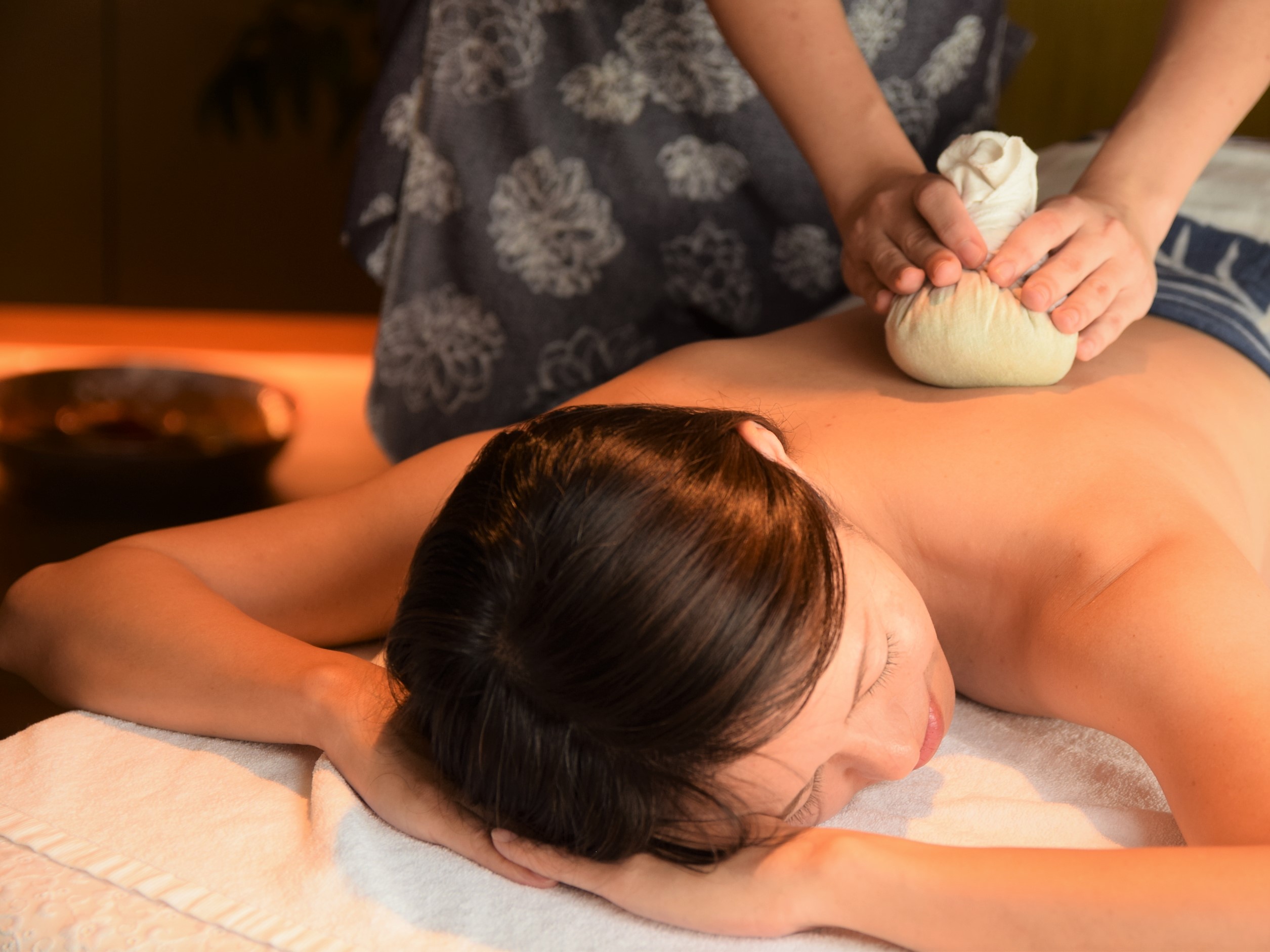 臀部、背中、腹部、腕や脚の全身にマリンボールを押し当て、ミネラルの力で毒素排出を促し、深いリラクゼーションへと導く。麻布に入ったソルトが体の筋肉をほぐし、じんわりと温かい熱がとても心地よくまさに至福の時間。温度の高いマリンボールによってミネラルを体内へ摂取し、内側のストレスまでも排出してくれるという効果も。