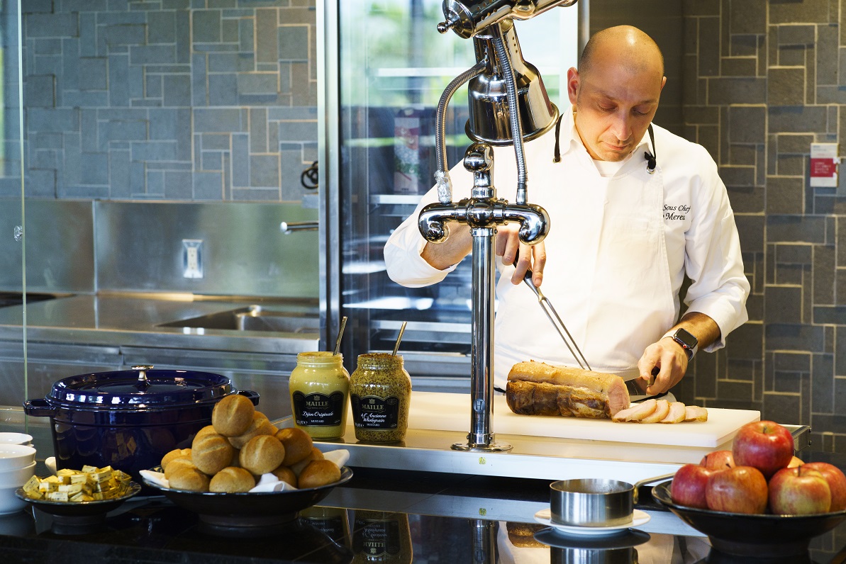 調理する様子を見ながらできたて熱々を頂ける、ライブキッチンは、まさにホテルで食事するときの楽しみのひとつ。朝食メニューの中でも人気の高い「フレンチトースト」や「エッグベネディクト」のほか、前菜からメイン料理まで、非日常感を叶えるメニューは、どの料理から食べようか迷ってしまうほど豊富なラインナップ。