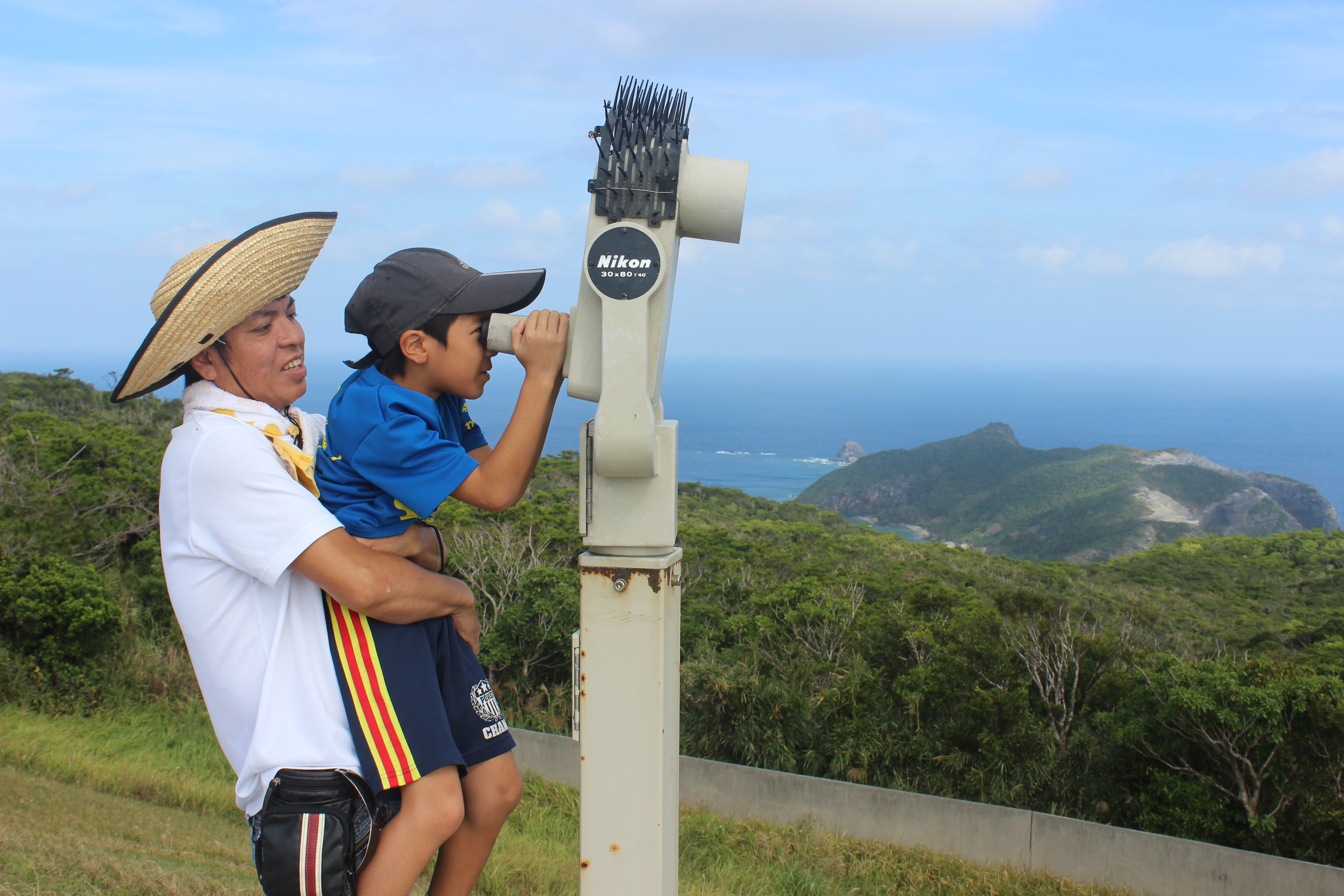 陸の上からクジラを探す、渡嘉敷島で新たに生まれたアクティビティ「陸上ホエールウォッチング」。船酔いを気にせずホエールウォッチングが楽しめるから船酔いが心配な人にオススメ。