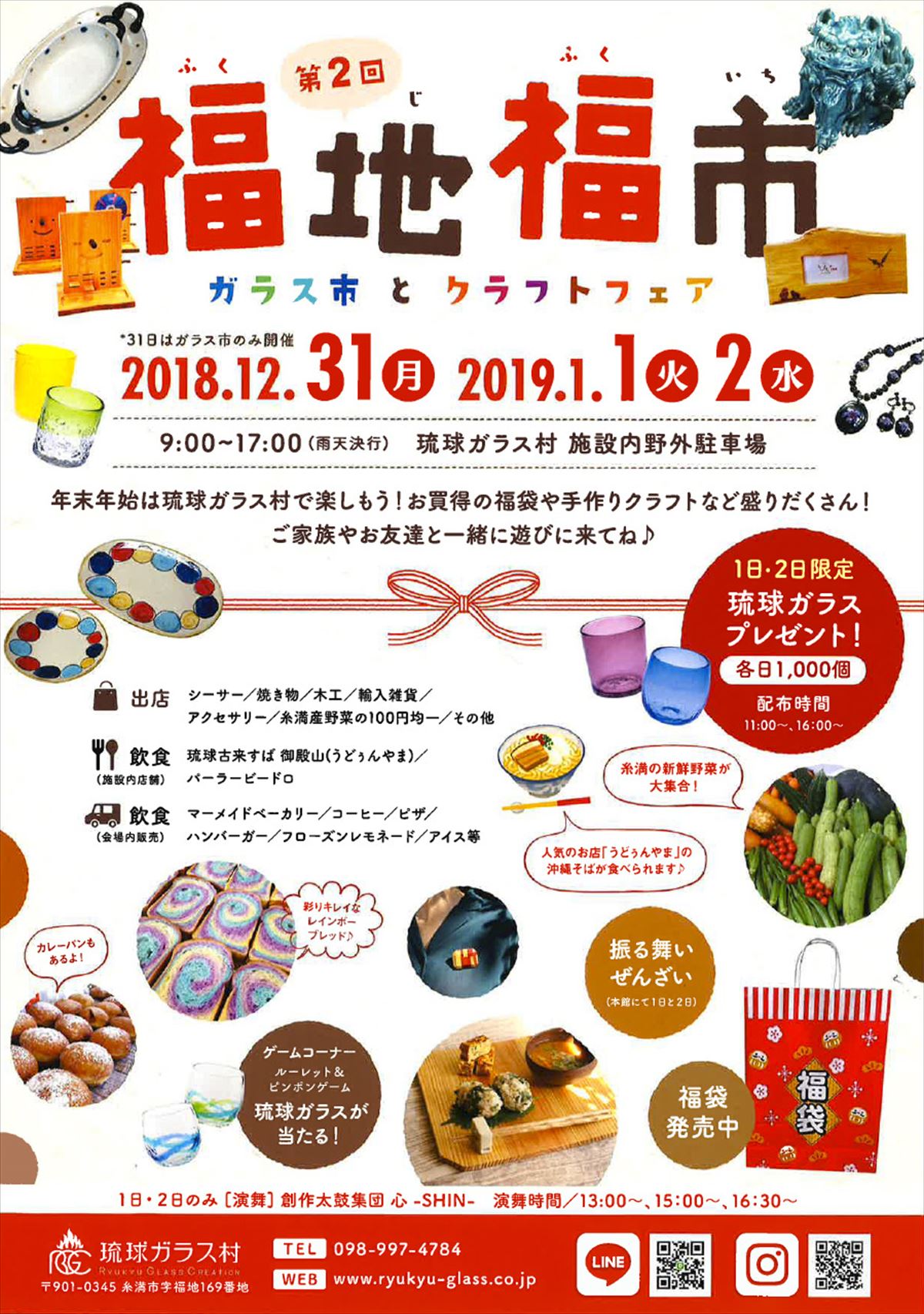 2018年12月31日(月)~2019年1月2日(水)、糸満市にある琉球ガラス村にて「第2回 福地福市」ガラス市とクラフトフェアーが開催。