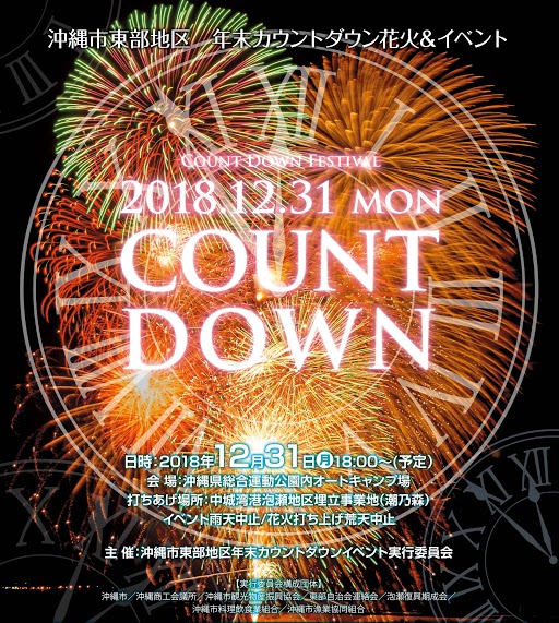 2018年12月31日(月)に「沖縄市東部地区 年末カウントダウン花火&イベント」が開催。
