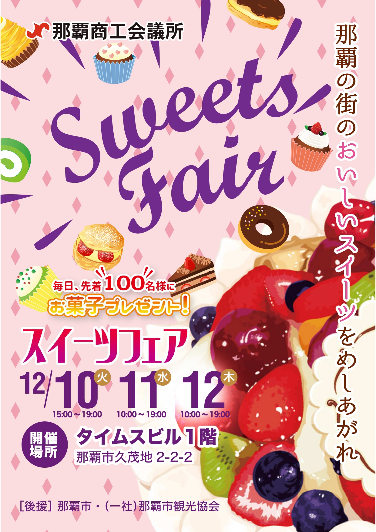 2019年12月10日(火)~12日(木)の期間中、那覇市にあるタイムスビルの1階で「Sweets Fair」が開催される。