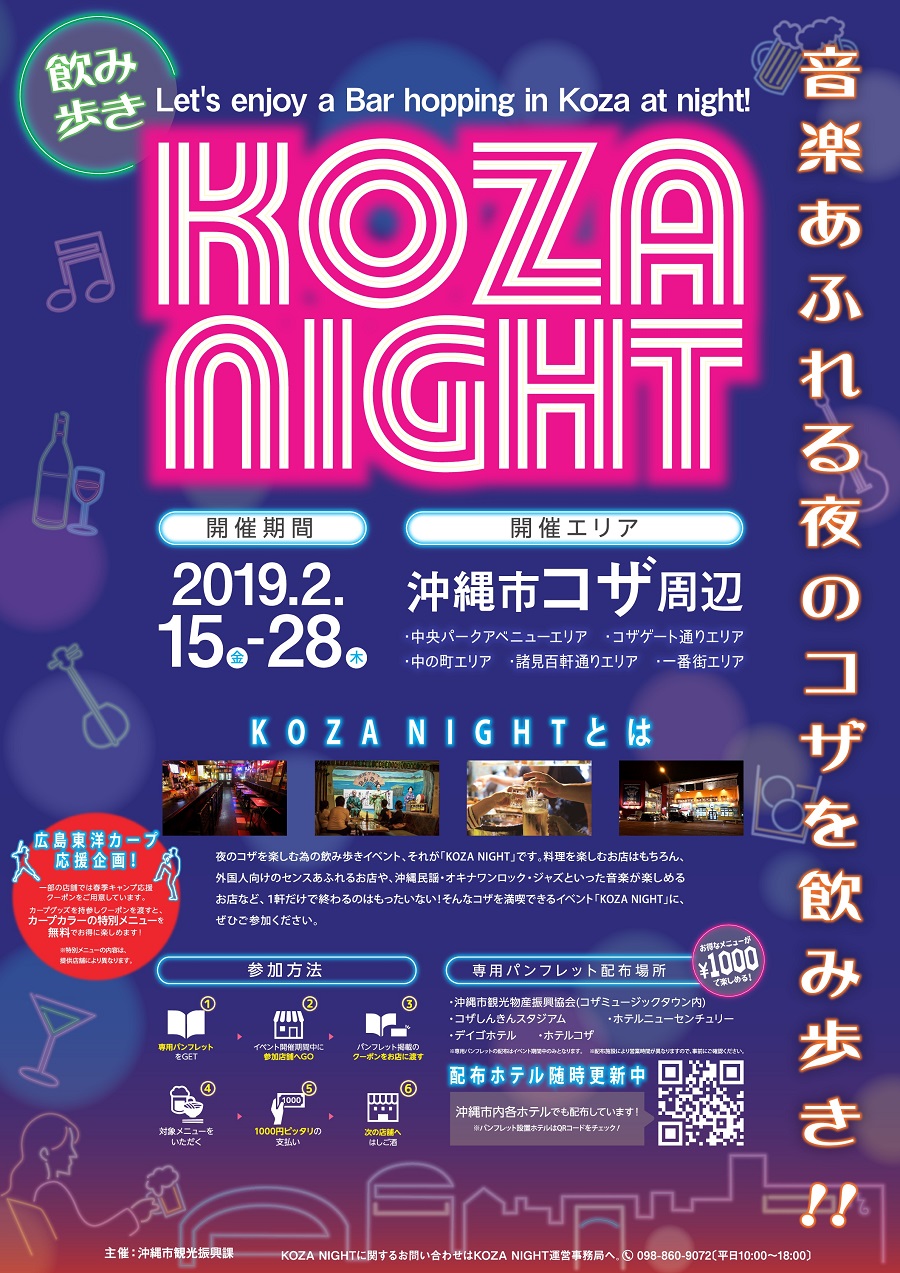 2019年2月15日(金)~2月28日(木)、夜のコザを楽しむ飲み歩きイベント「KOZA NIGHT(コザナイト)」が開催される。