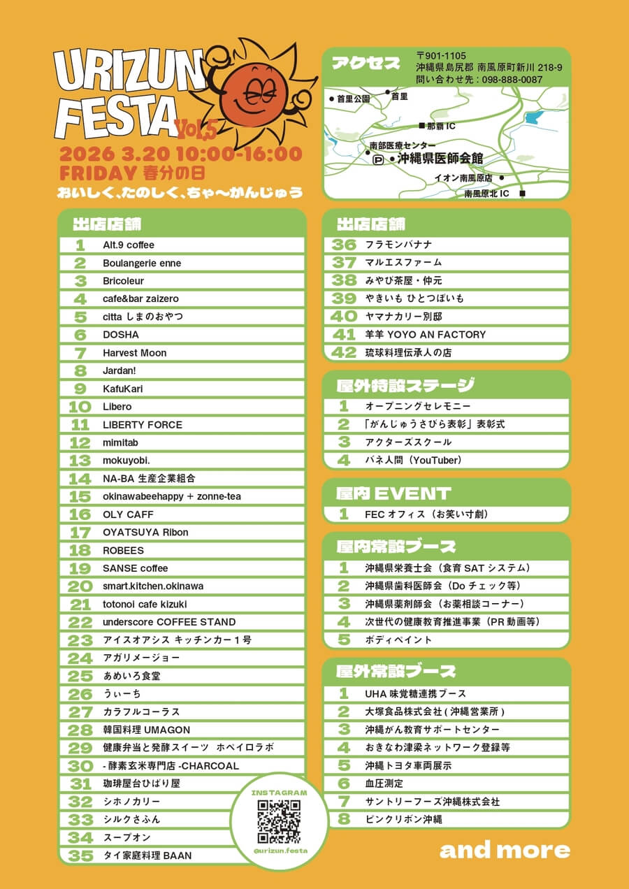2026年3月20日(金・祝)、南風原町にある沖縄県医師会館にて「第5回 うりずんフェスタ」が開催される。
