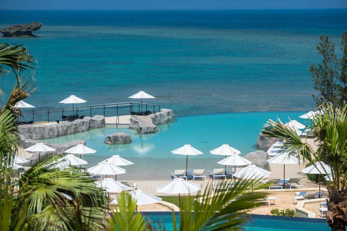 ホテルを360度囲む美しい海と、海との一体感を演出するグスクプールは、水深の浅いキッズプールもあるほか、2つのジャグジーがあり、くつろぎのひとときを満喫。海のすぐ隣にあるラグーンは、海水が常時循環するエリア。まるで海と一体となっているかのような気分で楽しむことができる。