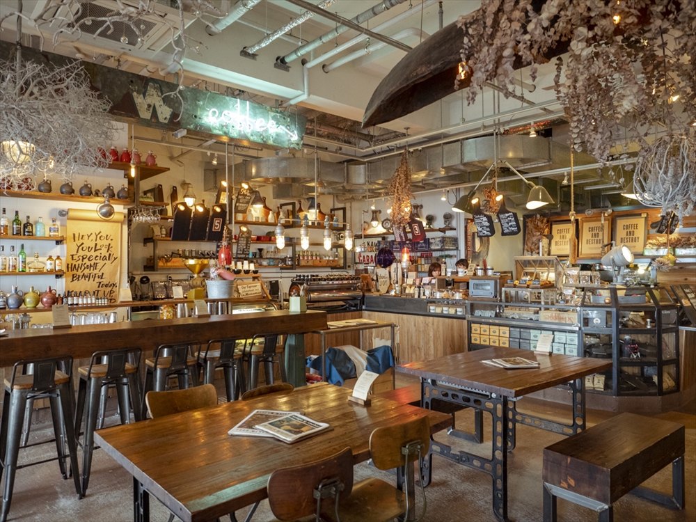 アンティークの調度品が出すノスタルジックな雰囲気と、店内に下がるドライフラワーが美味しいコーヒーと相まって癒し効果も抜群。