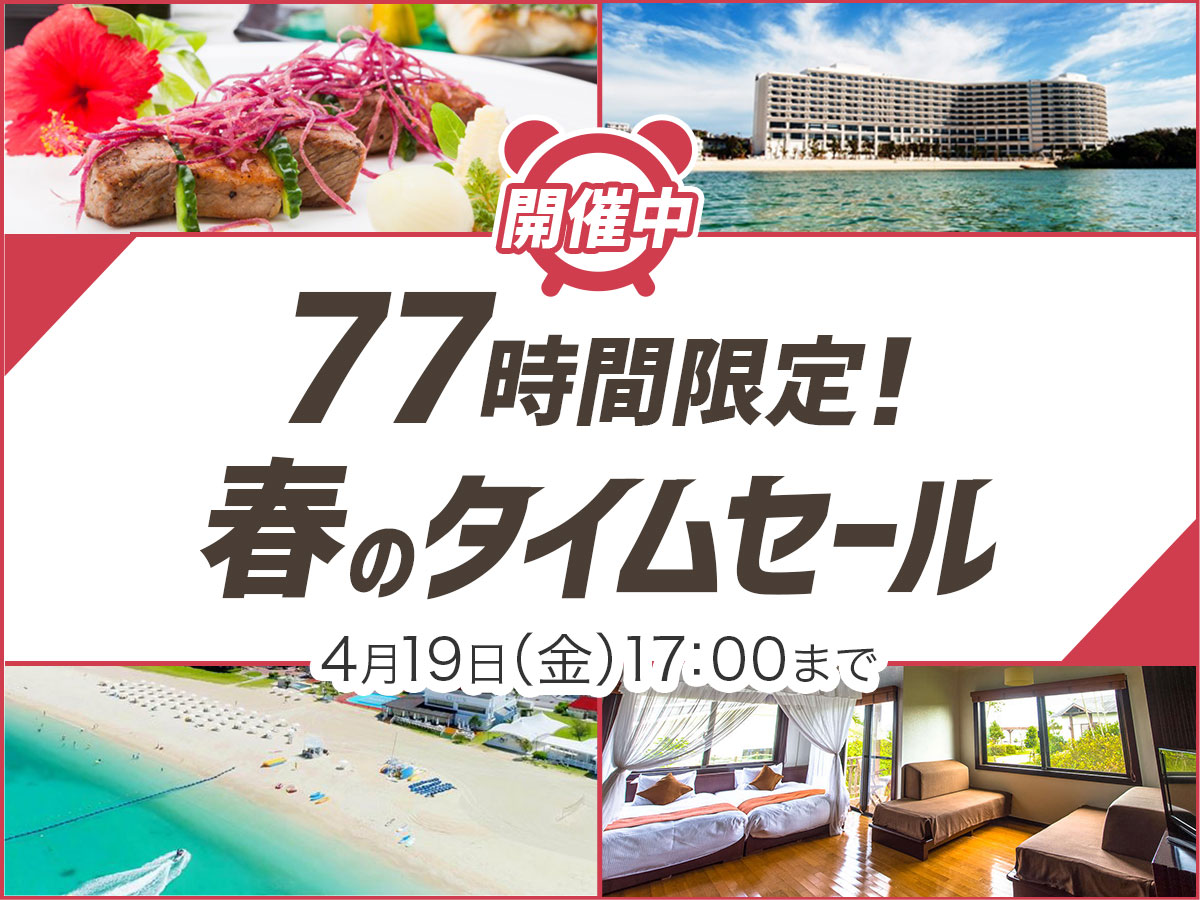 沖縄県民のおでかけを応援するサイト「ちゅらとく」では2019年4月16日(火)12時より、沖縄県内のホテルに特別価格で宿泊できる「77時間春のタイムセール」を開催する。