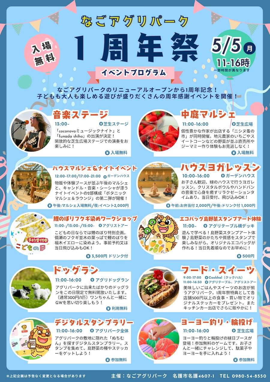 2025年5月5日(月・祝)のゴールデンウィーク真っ只中、「なごアグリパーク1周年祭」が開催される。