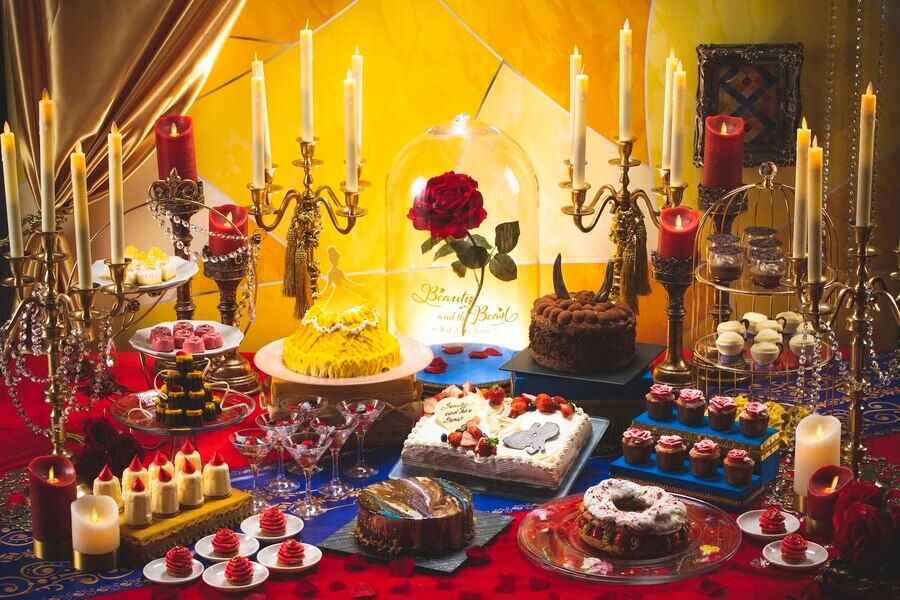 美女と野獣の世界観をイメージしたスイーツブッフェ。野獣の告白によって結ばれたふたりが開く「薔薇の舞踏会」をスイーツとセイボリーで表現。20種類以上のメニューをコーヒーや紅茶と共に楽しめる。