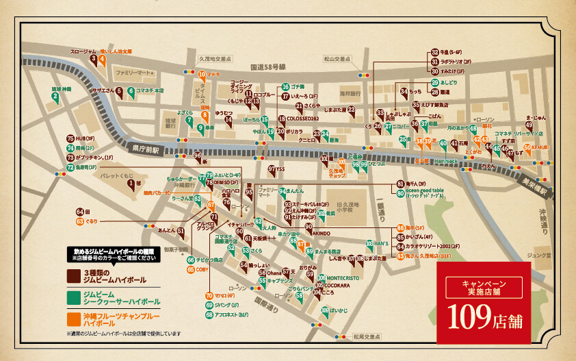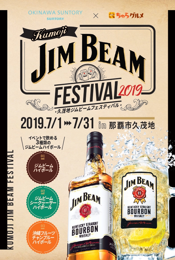 2019年7月1日(月)~2019年7月31日(水)まで、久茂地1・2・3丁目内の109店舗で、久茂地ジムビームフェスティバル2019を開催。