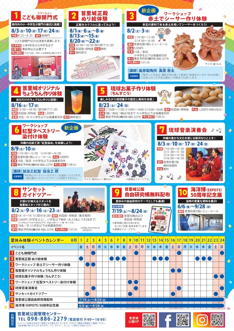 2025年8月1日(金)から8月24日(日)まで、首里城公園にて「首里城公園夏休み体験イベント2025」が開催される。