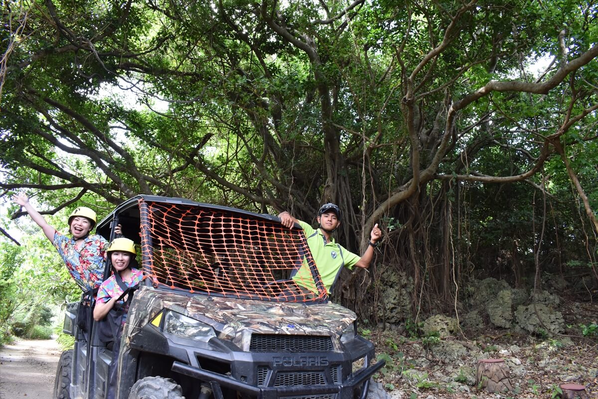 糸満市観光農園内にある「どきどき ガジュマルンチャー」では、ここだけでしか体験できない「絶叫BIGバギーライドツアー」を実施。
