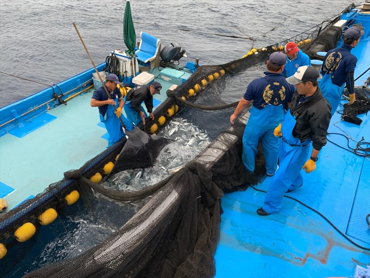 沖合に設置された網で、回遊する魚を捕らえる漁法。過剰漁獲になりにくいため、継続的な漁業ができる、環境に優しい方法だ。
