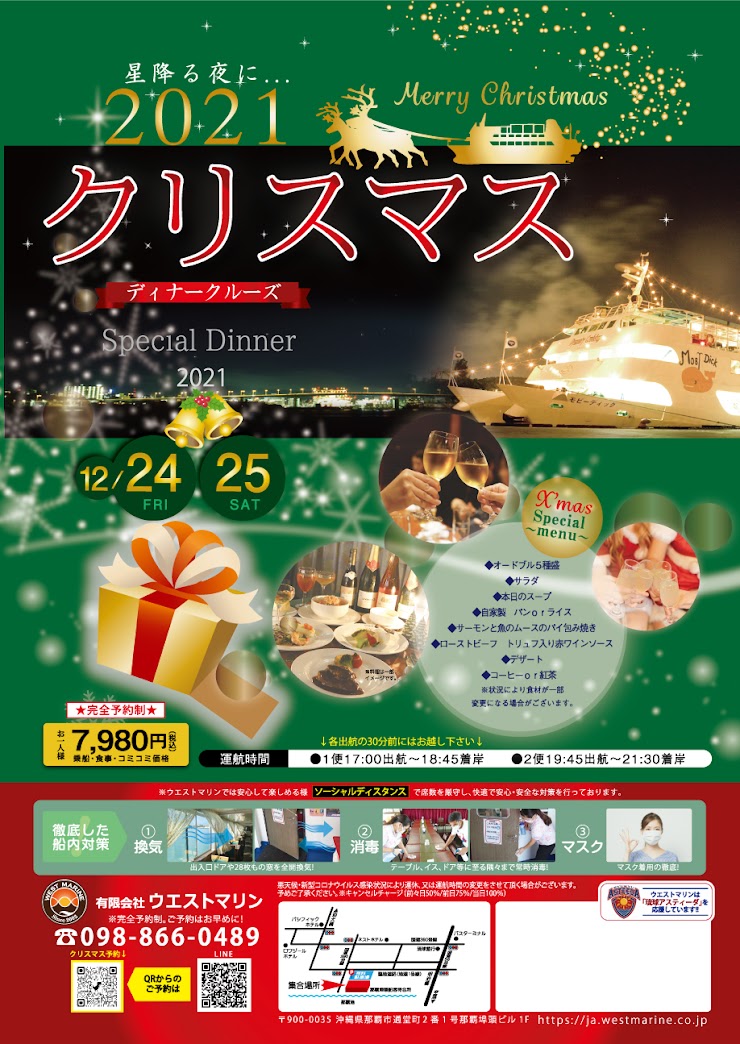 2021年12月24日(金)・25日(土)の2日間、沖縄最大級のレストランシップで行く「X'masスペシャルディナークルーズ」を開催。