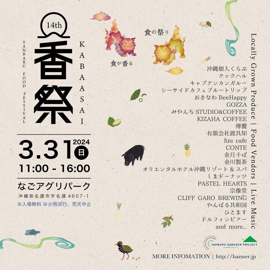 2024年3月31日 (日)、名護市のなごアグリパークで「第14回 香祭(かばーさい)」が開催される。