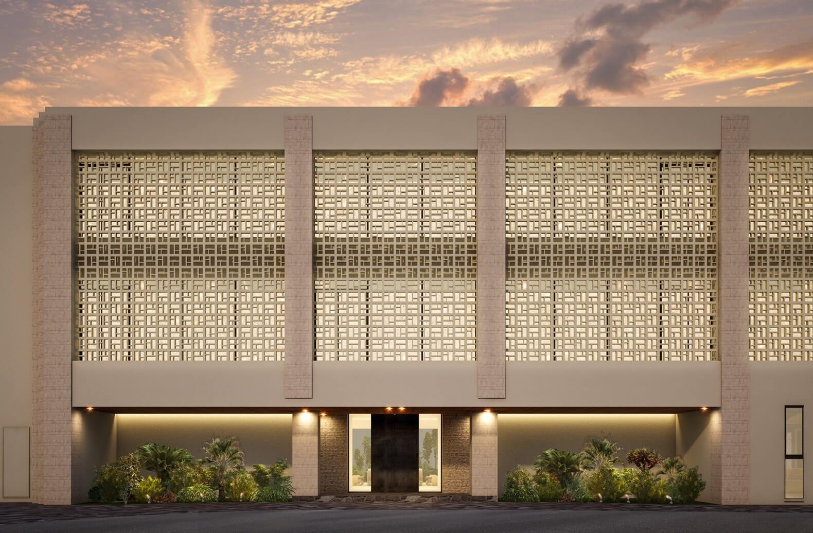 ランドスケープを抜け、花ブロックの重厚感のある外観から一歩館内に入ると、南国ならではの緻密で美しいモザイク、琉球石灰岩のコラージュを取り入れた内装デザインが、琉球の歴史を感じさせる空間となっている。