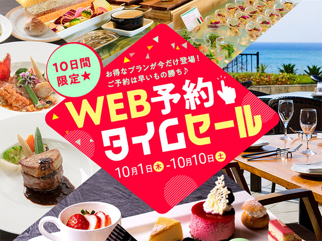ちゅらとくホテルレストランでは、2020年10月1日(木)~10日(土)の期間中、WEB予約で人気のレストランプランがお得になる10日間限定セールを開催。