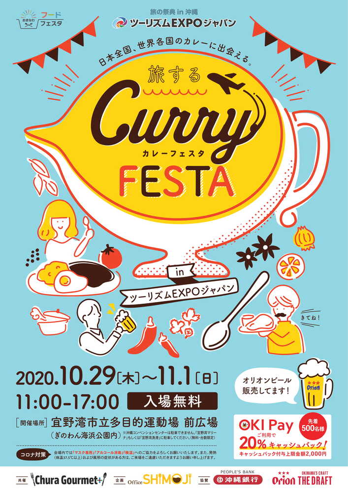 2020年10月29日(木)~11月1日(日)の期間中、宜野湾市にあるぎのわん海浜公園内で国内外の名物カレーが楽しめる「旅するカレーフェスタ」が開催。