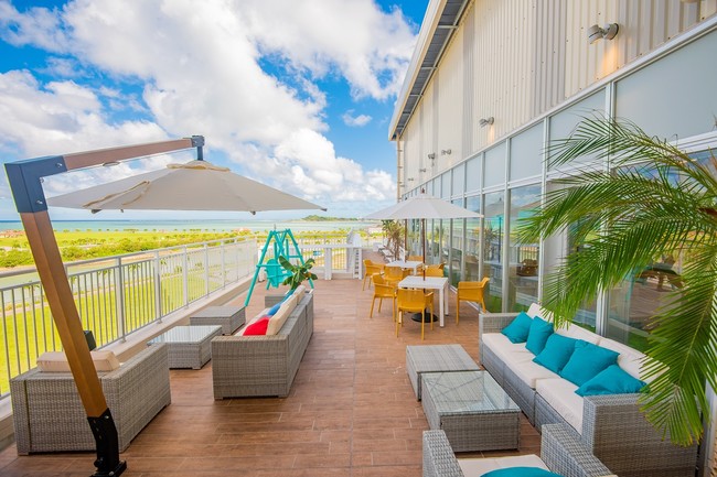 専用テラスからは美らSUNビーチが見える絶景ロケーション。海辺を眺めながらゆっくり寛げるので、ドライブやショッピングの際は立ち寄ってみてはいかが。