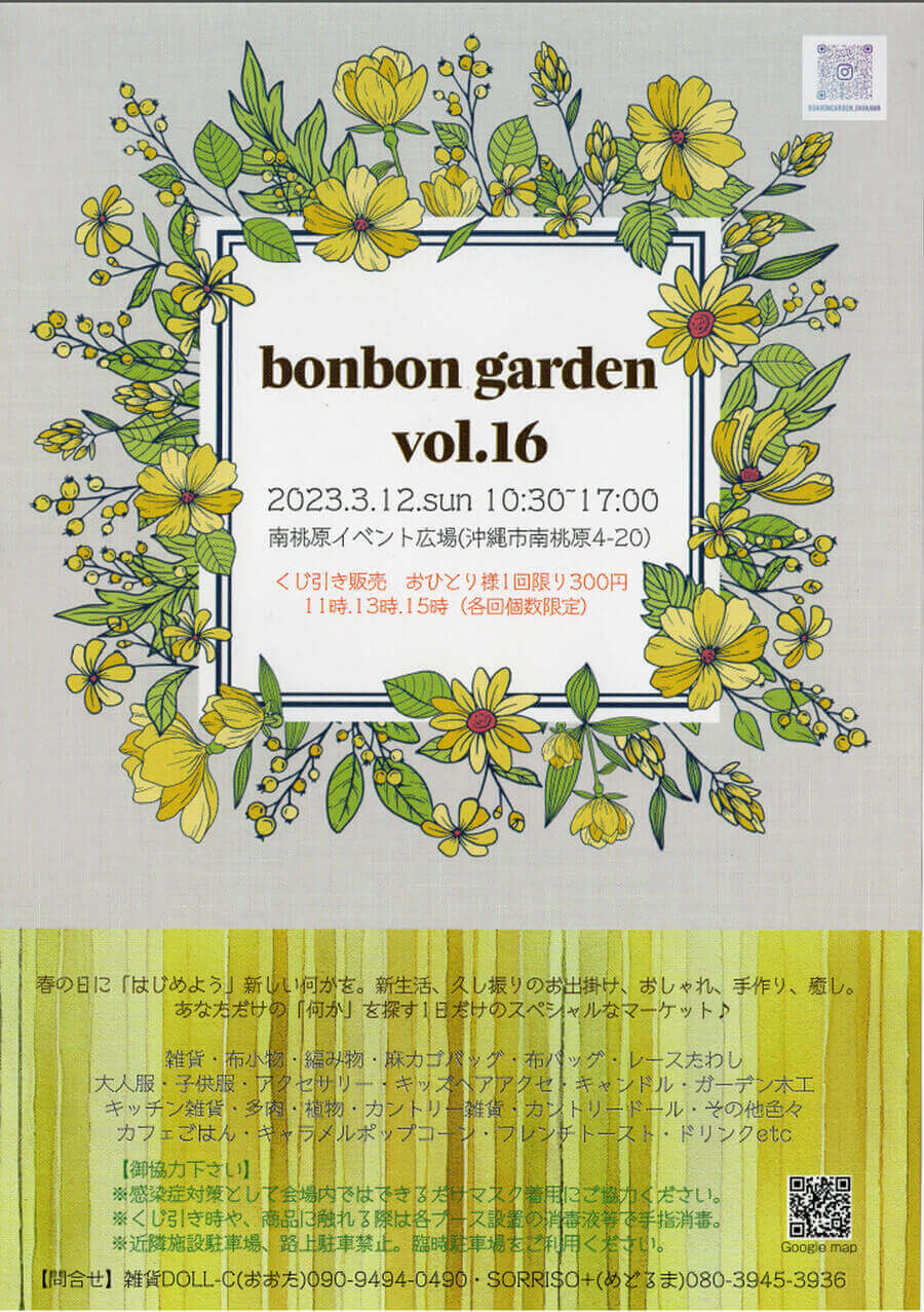 2023年3月12日(日)、沖縄市にある南桃原イベント広場に県内の”楽しい”と”おいしい”が集結した「bonbon garden vol.16」が開催。